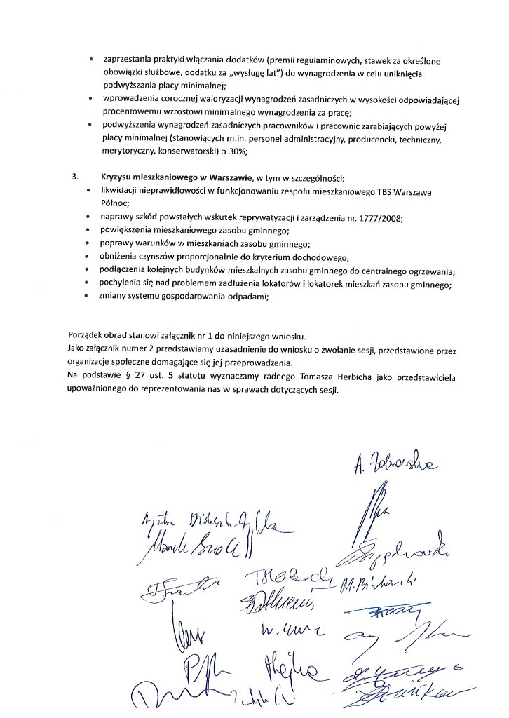 Nadzwyczajną sesję rady miasta wywalczyliśmy, aby wyrazić naszą jasną niezgodę na pogarszające się warunki życia oraz aby zebrać ze strony miasta jasne deklaracje dotyczące rozwiązań kryzysu panującego w stolicy. Pracownicy warszawskiego samorządu nie mogą dłużej przedkładać zysków ponad dobrostan i bezpieczeństwo mieszkańców i mieszkanek Warszawy!